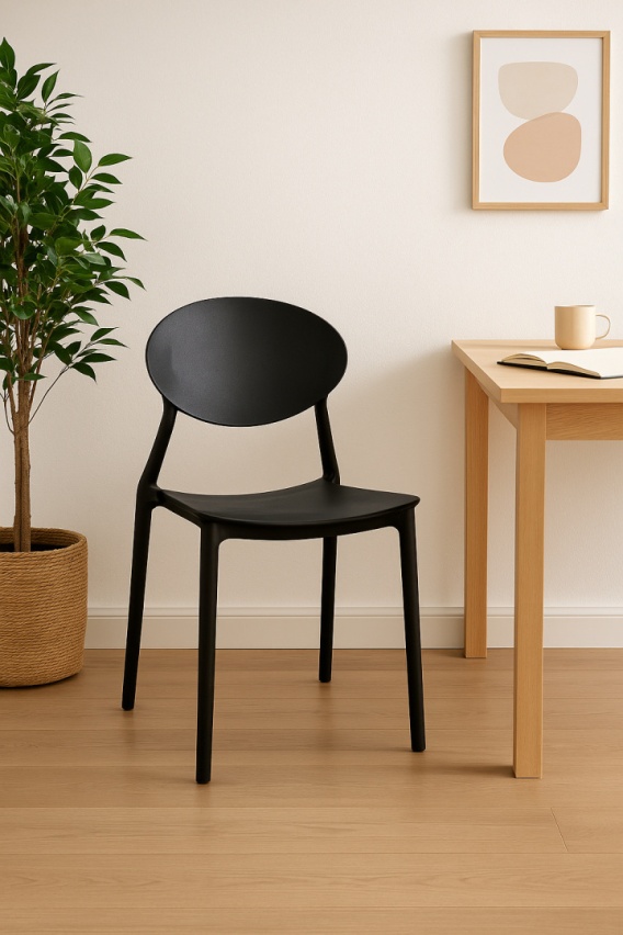 Czyste linie i opływowe kształty sprawiają, że krzesło świetnie komponuje się z różnymi aranżacjami – od nowoczesnych loftów po eleganckie przestrzenie komercyjne.
