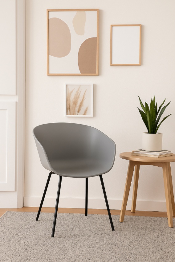 „Solaris” to krzesło, które łączy nowoczesną formę z subtelną kolorystyką. Jego zaokrąglona, kubełkowa forma i szlachetny odcień szarości nadają każdej przestrzeni klasę, nie przytłaczając jej. To idealny wybór do wnętrz, gdzie liczy się balans między designem a funkcjonalnością.